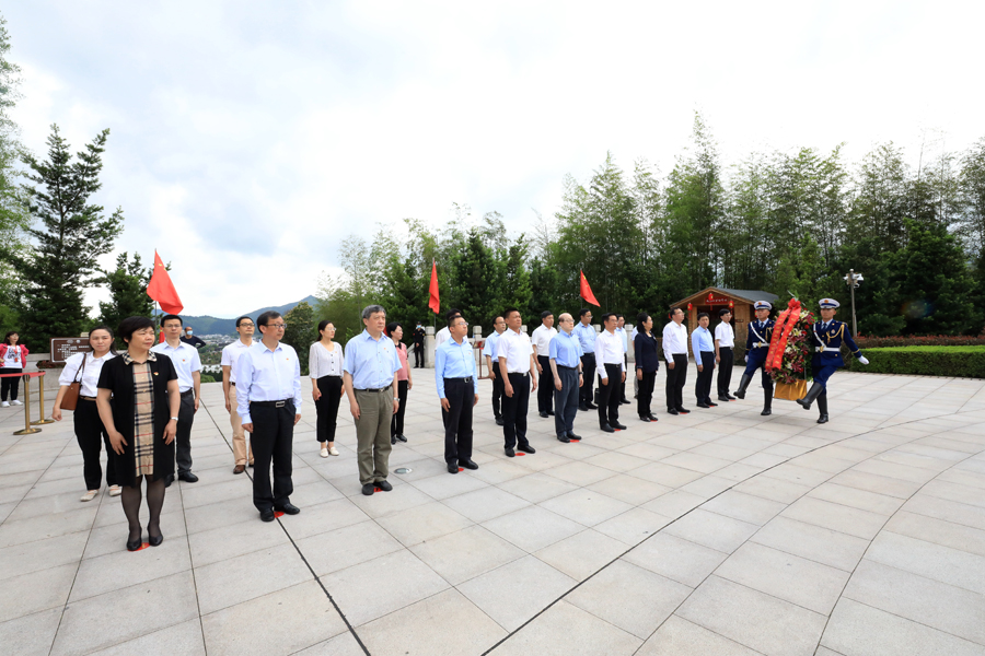 五月的龍巖,萬物欣榮,紅色的土地上孕育著無限生機與希望。劉結一一行先后來到毛主席紀念園、古田會議會址瞻仰學習。在雄壯的《東方紅》背景音樂中,調研組全體黨員向毛主席雕像三鞠躬并敬獻鮮花,繞雕像一周,誦讀毛主席詩詞,感悟中國共產黨人的初心使命。在黨旗前,劉結一帶領調研組全體黨員重溫入黨誓詞,銘記對黨莊嚴承諾,不斷進取,奮斗終身。
