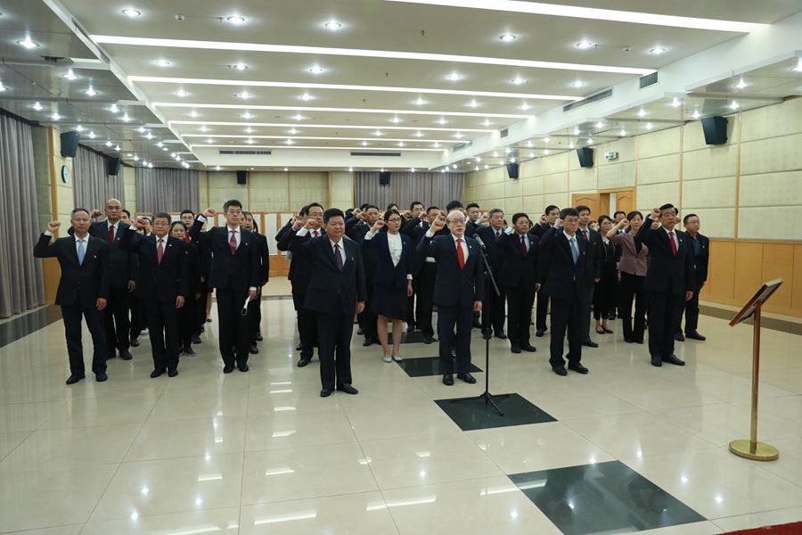 儀式在激昂的國歌聲中開始。黨員列隊整齊,精神抖擻,在劉結一同志的帶領下,面對鮮紅的黨旗,舉起右手、莊嚴宣誓。為共產主義奮斗終身的錚錚誓言,表達了堅守初心使命、為黨的事業畢生奮斗的堅定信念。新老黨員代表在發言中表示,一定會牢記入黨誓言,堅定理想信念,立足本職崗位,發揮模范作用,創造出無愧于黨、無愧于人民、無愧于時代的業績。